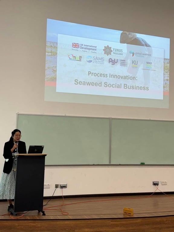 On June 25, 2024, at the Albukhary International SDG Conference in Kedah, Malaysia, Nittayapond Nipatsant, Seaweed Social Business Manager at Yunus Thailand, shared inspiring insights from our pioneering Seaweed Social Business Project.
